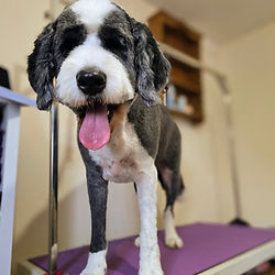A complete grooming including bathing, brushing and coat trimming and nail clipping, with attention to detail and patience for all including nervous or rescue dogs who have been groomed previously, (if your dog is new to grooming, please choose the introductory session for the first groom). This service makes sure each pet leaves looking their best and feeling comfortable.